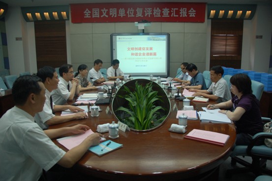 4月获悉“全国文明单位”复评的消息后,集团领导第一时间做好工作部署,由综合管理部和运标部牵头,各单位分别从组织领导、思想教育、学习风气、民主管理、环境环保、工作业绩等6大评选标准严格对照自身情况,积极整理、汇总2009年以来的相关资料,并做好各方迎检工作。