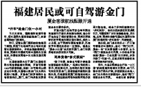 福建居民或可自驾游金门