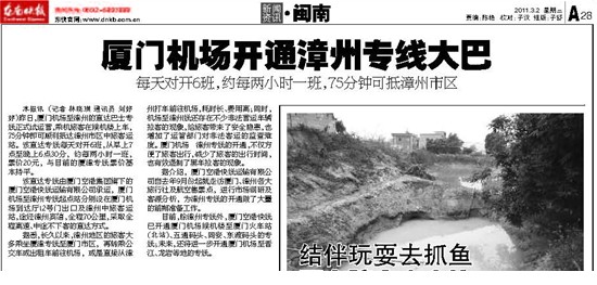 东南快报:厦门机场开通漳州专线大巴
